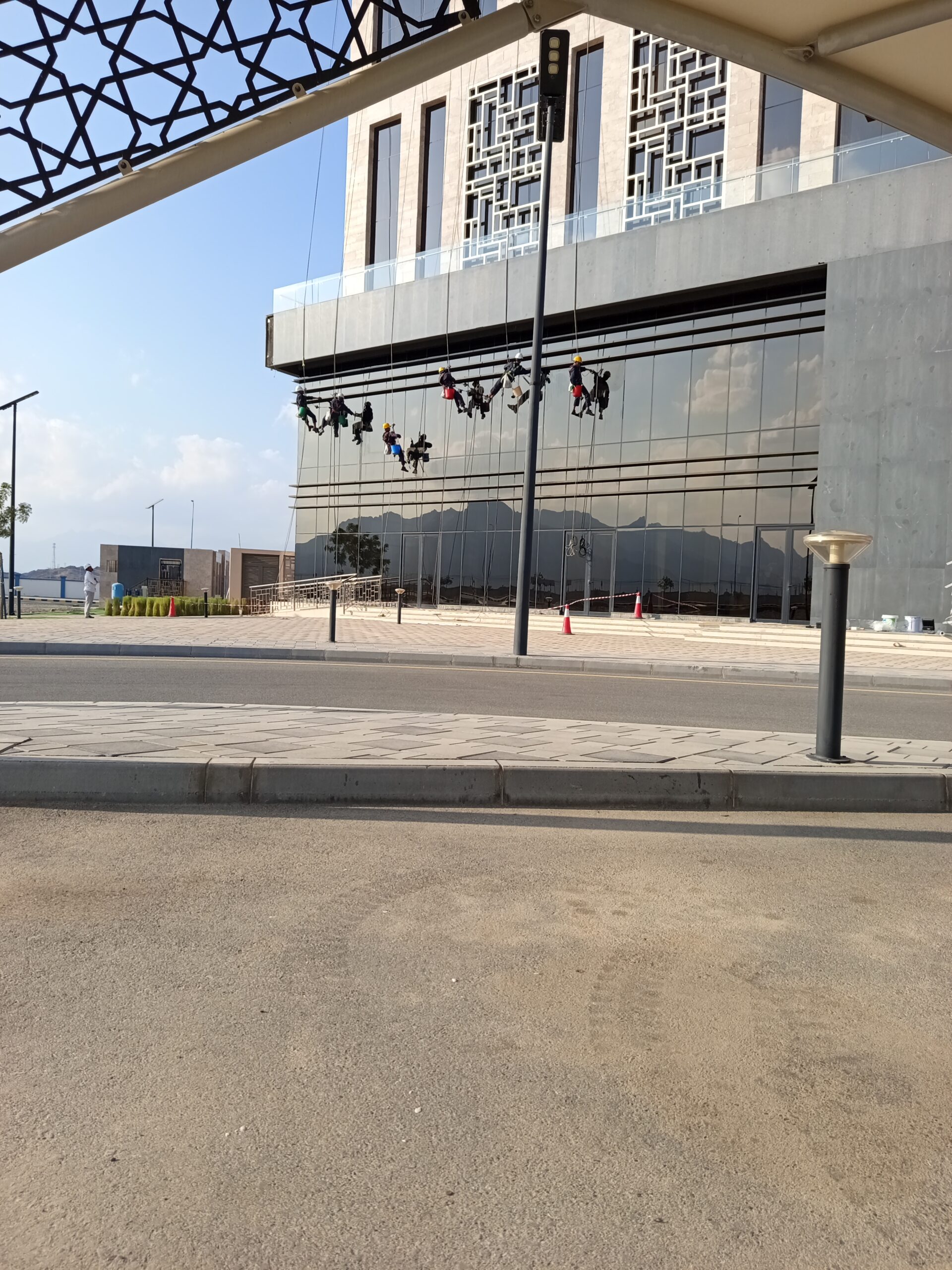 • 🏙️ تنظيف واجهات الأبراج التجارية في وسط المدينة.
